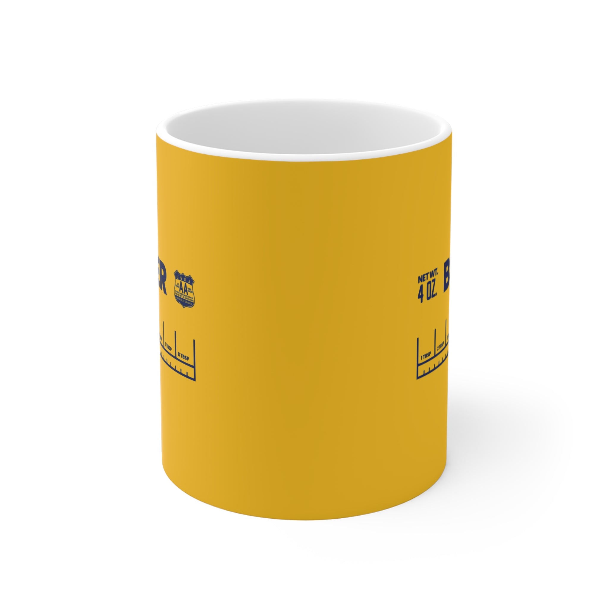 Bright, cheerful, and quietly clever — this 11oz ceramic mug brings a little kitchen nostalgia to your morning ritual. The warm butter-yellow wraparound print and playful measuring-mark graphics feel like a nod to hands-on baking and slow weekend breakfasts. It sits comfortably in hand thanks to its rounded C-handle and balanced weight, making each sip feel relaxed and familiar. Use it while you’re measuring ingredients for a new recipe, curled up with a cookbook, or simply enjoying the smell of fresh coffee. The design speaks to home bakers and anyone who finds joy in small, tactile moments in the kitchen.